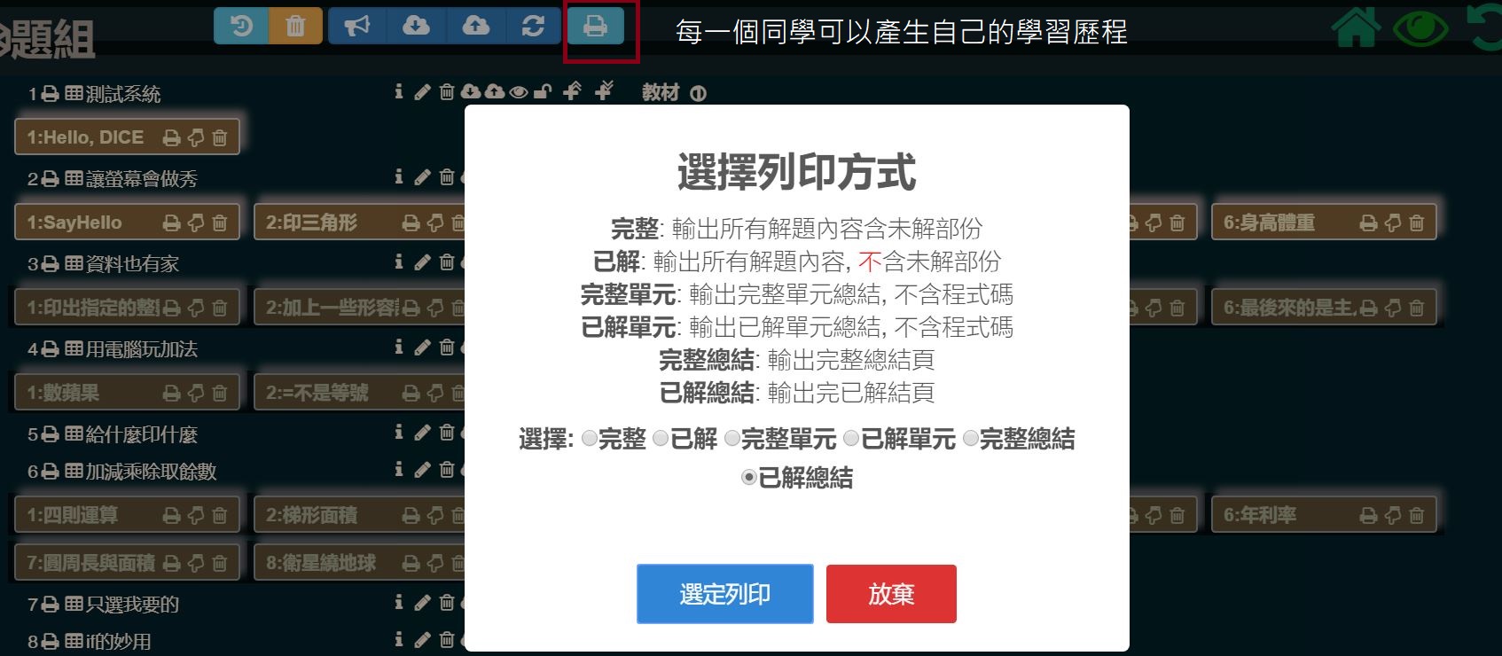 產生學習歷程:可產生6種學習歷程,被老師隱藏的題目無法產生歷程